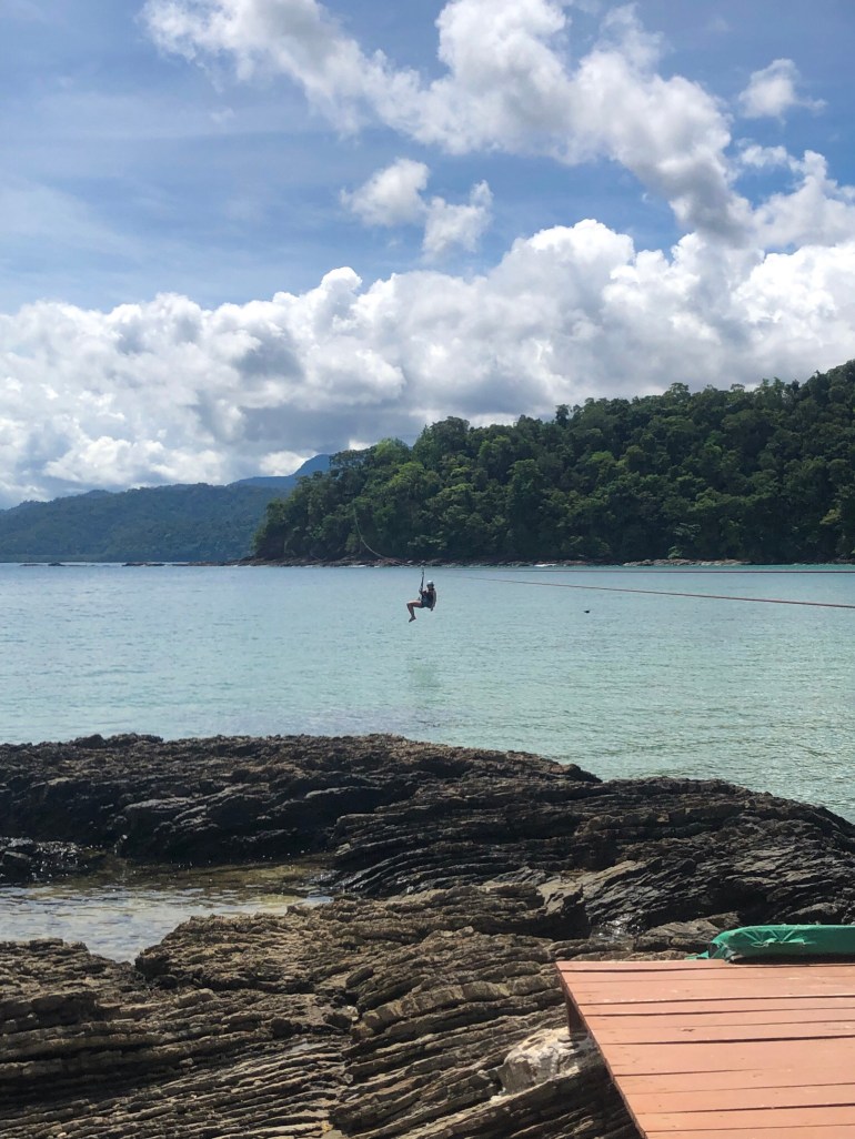 First is a super short ride across a small river on a floating bundle of wood for lack of better words followed by a short hike to the zip line.